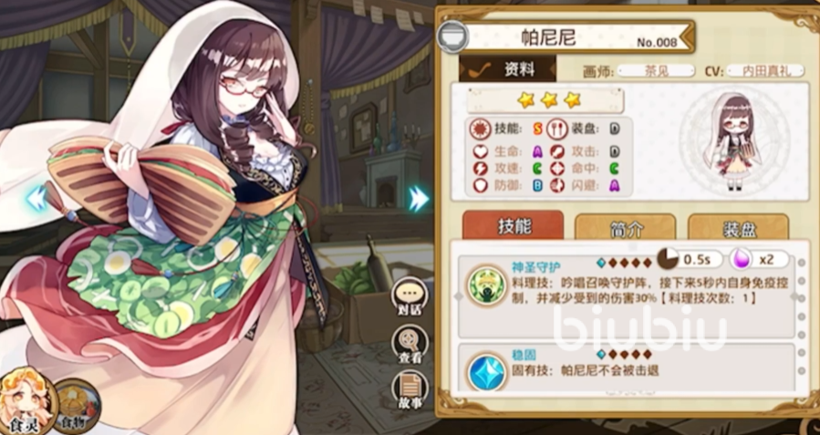 帕尼尼的料理技可以免疫控制,同时获得最高40%减伤,并且自身的固有技赋予了她不被击退的特性,还是个3星角色,入手也非常容易。摩卡咖啡,同样3星,料理技对远处敌人打出范围伤害,固有技则是随着攻击次数的提升叠加暴击率,简单直接的伤害提升。同为3星的蓝色玛格丽特,料理技不仅能造成范围伤害更是可以定住敌人,群伤加范围控制。