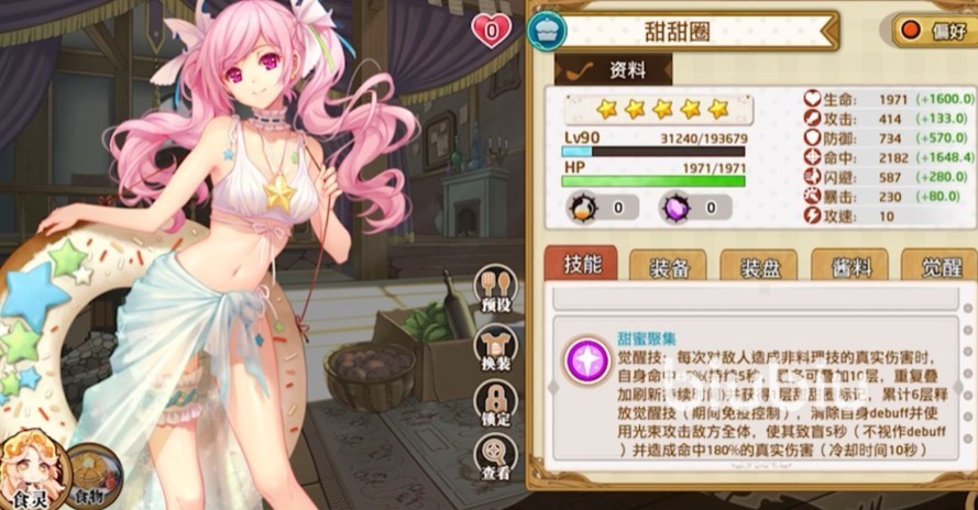热香饼+墨西哥卷饼+面包诱惑+甜甜圈+凯撒沙拉。主打单体点杀,活用主食头盘,通过合理的装盘来降低甜点的使用费用,增加甜点的技能次数。这套装盘可以让全体的主食次数1费用1,所有甜点次数3费用1,头盘次数1费用1。