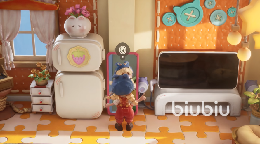 当玩家选择好角色形象后就能正式进入游戏过程中了,想要换装的话,需要在自己的家园中先拥有一个衣柜。根据游戏的设定,任何拥有存储功能的道具在缩小后都能有机会成为衣柜。在拥有衣柜后还需要一面镜子,能选择的成为镜子的物品道具,可选范围也很广,玩家可以发挥下自己的想象力,看看什么道具适合作为衣柜和镜子。