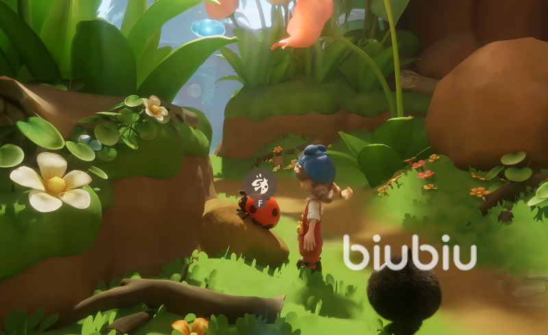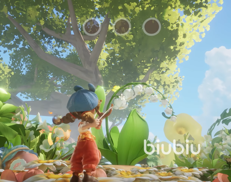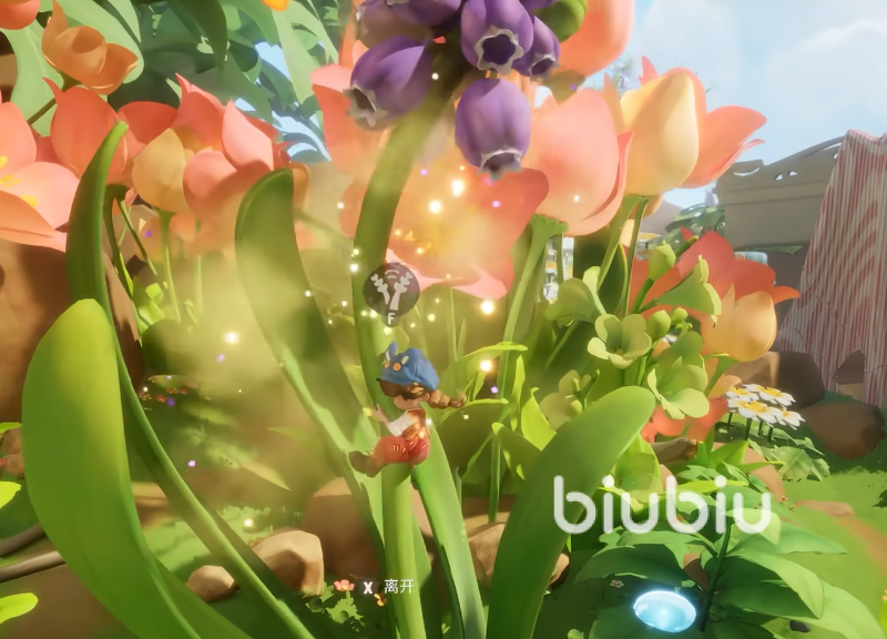 2、利用各类动作来采集花粉。因为游戏的设定,角色变得只有5cm了,所有的物体都变大了,所以哪怕是一朵小花在游戏画面中也会显得巨大。在采集花粉上有两种方式,一种是在面对花瓣是平铺展开的,这些花朵还有个特性喜欢一簇簇的开花,那最好的采集方式就是在花海上连续跳跃了;还有一种就是像图中这样,有高高的花茎,这个时候利用身体小小的优势,直接跳上根茎进行摇晃就能采集了。整个过程非常的可爱。