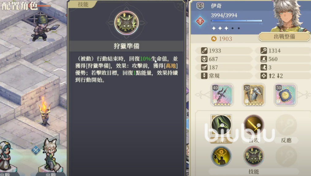 3阶左线“灰狼之跃”,瞬发的支援技,跳到目标地暴伤提升。右线狩猎准备,在行动结束后回血10%,并获得高地优势,如果击败目标回能1点,该效果会持续到行动开始。3阶技能的选择主要看你想走什么方向,如果是走感染流那么推荐选左线,可以加行动力提高暴伤。走辅助路线的话选右边的技能,每回合有自动回血并且能被动触发高地的效果,提升续航与输出。非要选的话推荐选左边的走感染流。