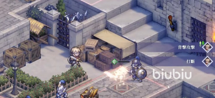 任务是从侧门奇袭科特的指挥部,首回合直接麦莎跳下台阶解决掉前面的盾兵,顺带会将盾兵打到前面的机关,从而对左下的大片敌人造成伤害。王女亲卫则到左侧待机。泰登、科尔、伊南娜都来到左侧前线,伊南娜加个与你同在buff。