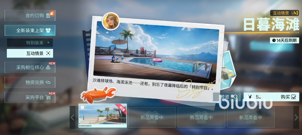 玩家在购买了角色时装之后,还能解锁特定场景。游戏本身在剧情内容上就有很多的衍生内容,玩家通过购买时装或者是达成场景的解锁条件,就能解锁与角色的限定场景,这对于喜欢二次元游戏的玩家来说会很喜欢这个设定。