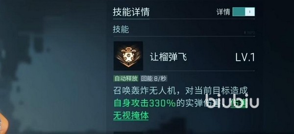 黛比虽然只是R品级的角色,但强度却不低,因为较容易获取,属于升阶属性方面都不差,较容易培养起来。然后是她的关键技能“让榴弹飞”,可以召唤无人机对当前目标进行攻击,而且该伤害还可以无视掩体。