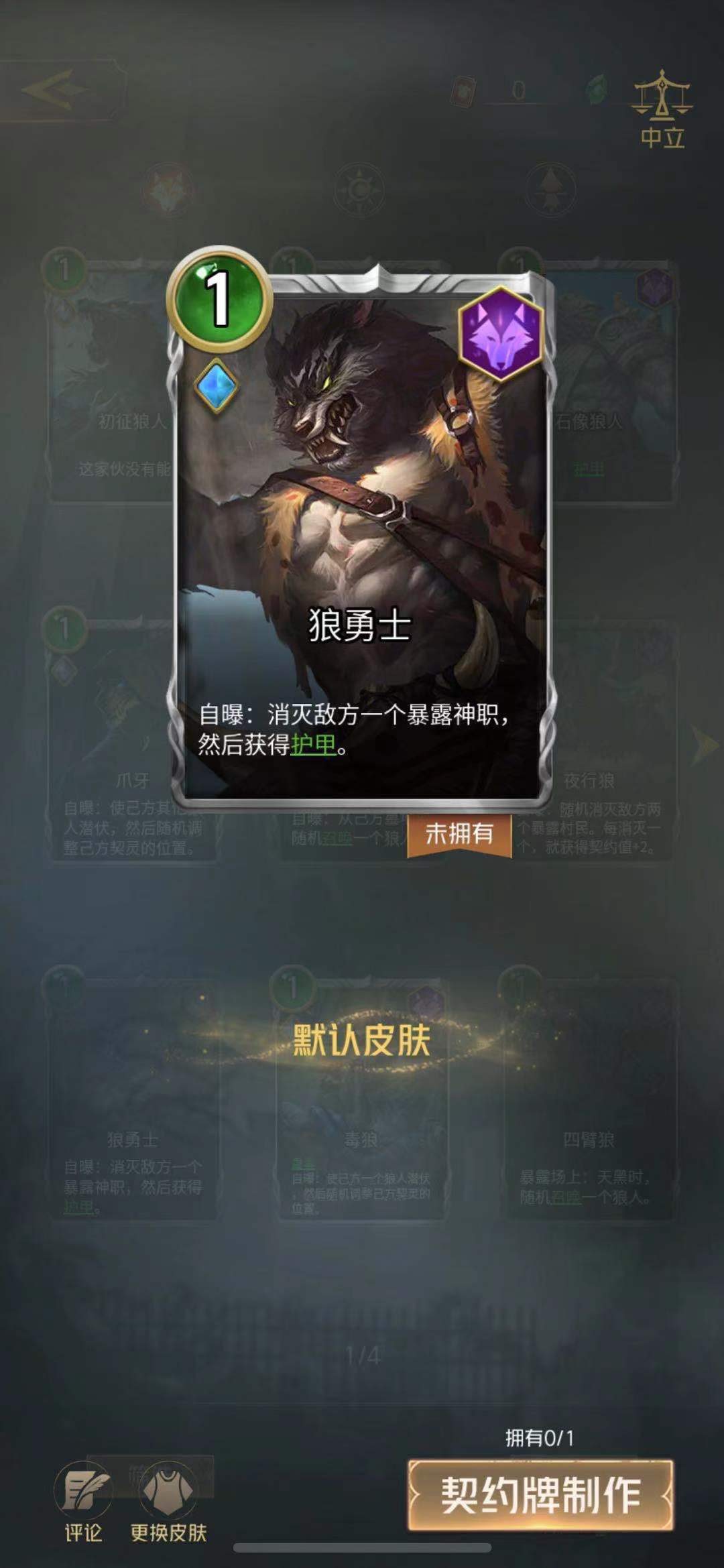 狼勇士作为一张中立狼牌,拥有自曝技能可以消灭敌方一个暴露的神职,并且自身获得护甲,护甲可以抵消一次消灭伤害。在狼人当中属于攻守兼备的角色,卡牌的适应性很高,可以贴合各类卡组,但是需要自曝对于狼人来说还是有一定危险的,即使获得护甲也避免不了暴露,需要谨慎使用。
