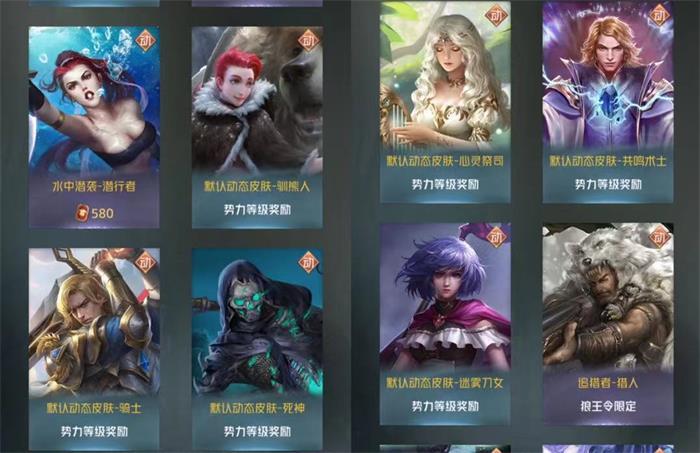 驯熊人、骑士、死神、心灵祭祀、共鸣术士、迷雾刀女的皮肤是完成势力等级任务获取。