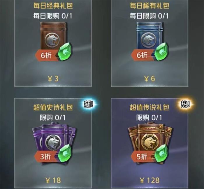 另一种获得方法是商城里的礼包,打开左上方头像下的的商城标志,选择中间的礼包,就可以看到多种购买选择,礼包可以获得开出稀有卡牌的卡包。