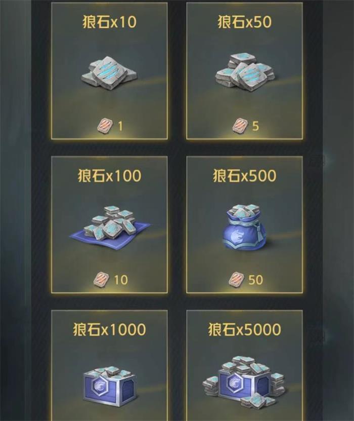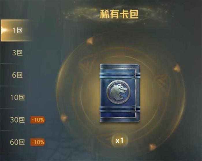 作为获得卡牌的唯一途径,稀有卡包购买主要需要金币和狼石,购买数量越多优惠也就越大。金币可以通过每日签到、任务、进行游戏等方式获取,而狼石需要通过一些活动和充值获取。狼石通过狼印兑换,一狼印十个狼石、五个狼印五十个狼石以此类推,狼印则是六元六个三十元十个以此类推首冲有活动。