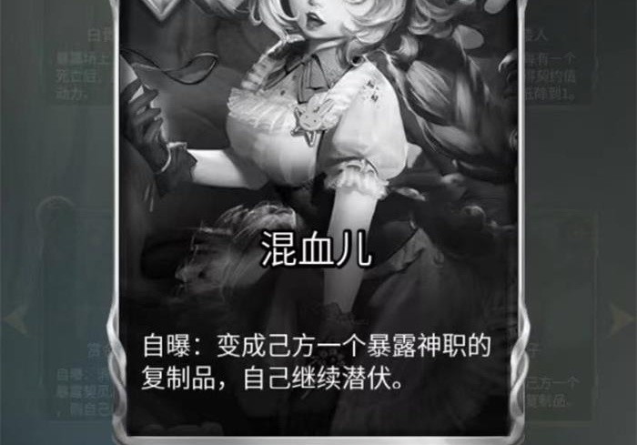混血儿自爆后可以变成己方一个暴露神职的复制品,自己继续潜伏,也就是可以有两张暴露神牌和一张混血儿在场上,使玩家多一张卡牌,并且可以让混血儿安全潜伏,推荐搭配狼狗使用。