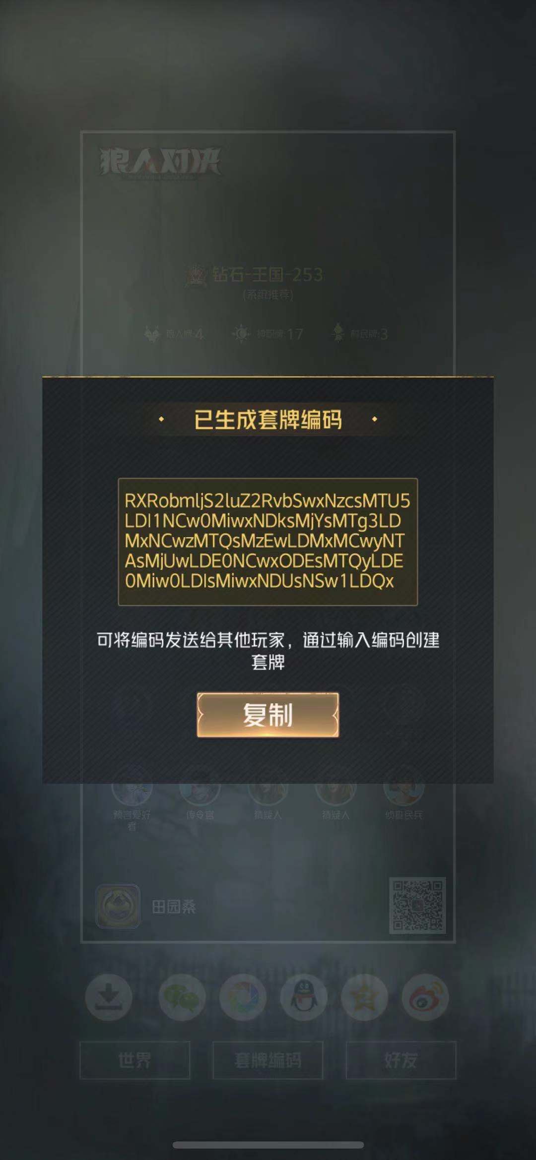 当然我们自己组的套牌也可以通过编码的形势分享给其他人,也是一样找到编码进行复制,转发给其他小伙伴即可共享自己的牌组。