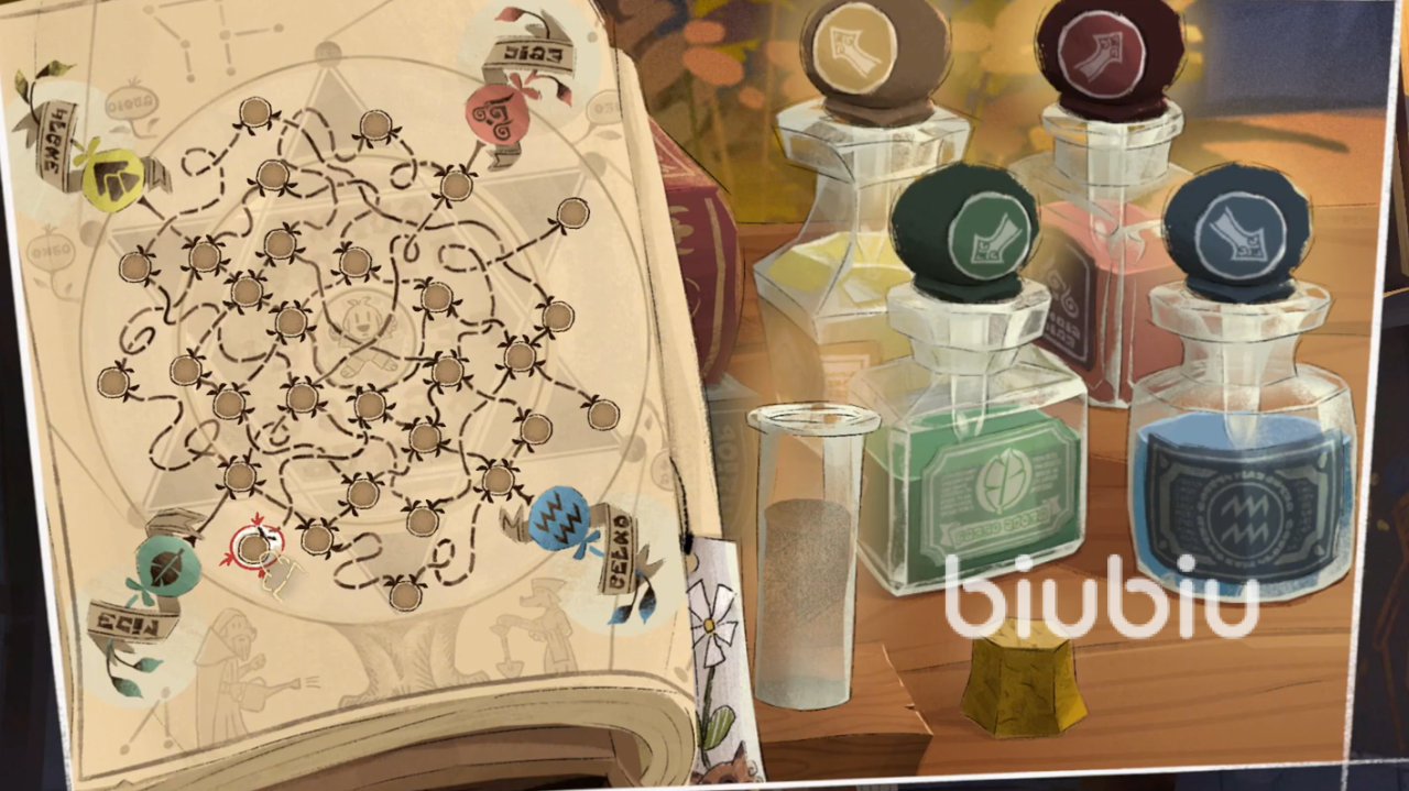 在这个章节后半段有一个非常难的解谜游戏,很多玩家都卡关在这里不知道如何推进,这里玩家只需要按照按照顺序加入一滴蓝色、三滴黄色、一滴绿色营养液就可以调配出任务所需要的道具,将道具使用在发黄的花卉上就完成了最后一个解密游戏。