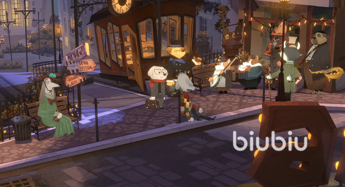 游戏采用了暖色调的美术风格,整体画面艳丽且明亮,给玩家创造了一个童话般的世界,大家可以这个精雕细琢的世界中,探索充满特色的街道,和可爱狗狗形态的不同角色互动聊天,解决它们的各种难题,逐渐熟悉彼此,体会生活的百态。