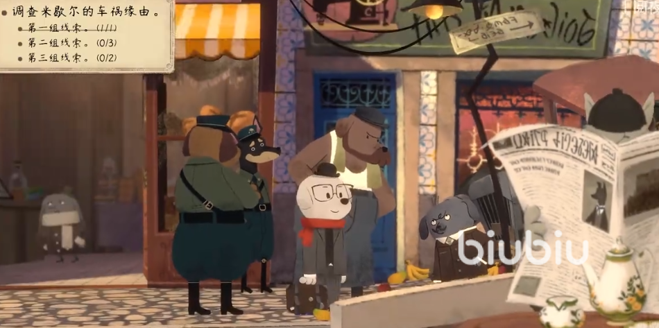 我们在接取任务后,先调查小灰,他自称自己有急事,没有转弯等,交流完后直接拿到第一条线索,再调查一下相撞的车辆,车窗虽然碎裂但却没有碎玻璃,得到第二个线索,接着和面包店门口带绿色帽子的先生,玩一下翻花绳小游戏。