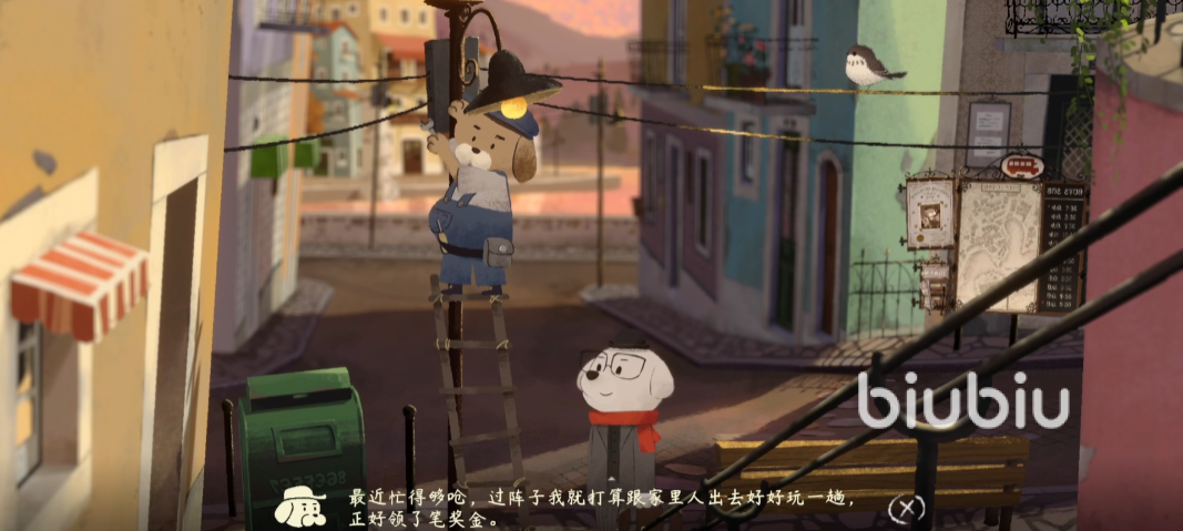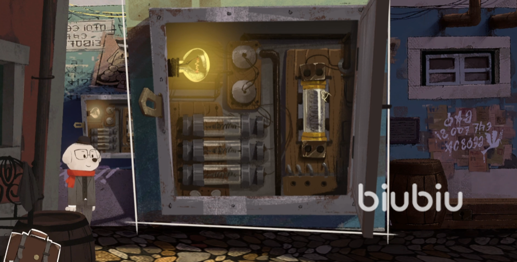 之后去往河边,可以在路边看到另一个电箱,这里还有个修理的工人,与之对话,他说他要着急回家吃饭,准备下班了,等他走了之后,再将电箱打开,拿出里面的保险丝,然后装在第一个电箱里面,这样电力就回复正常运行了。