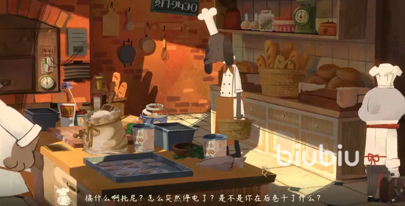 顺利打开后先用我们箱子中之前剧情获取到的红绳,将已经松散的支架给绑好,在装上之前拿下来的保险丝即可修好,跑回面包店把衣服换好,再进入厨房就可以制作面包了。