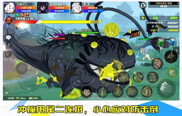 游戏玩家面向的首先BOSS,是一头水陆两栖的大蝾螈。1号BOSS的作战分为三个阶段,每阶段有不一样的攻击方式,各位必须留意三个输出结点。