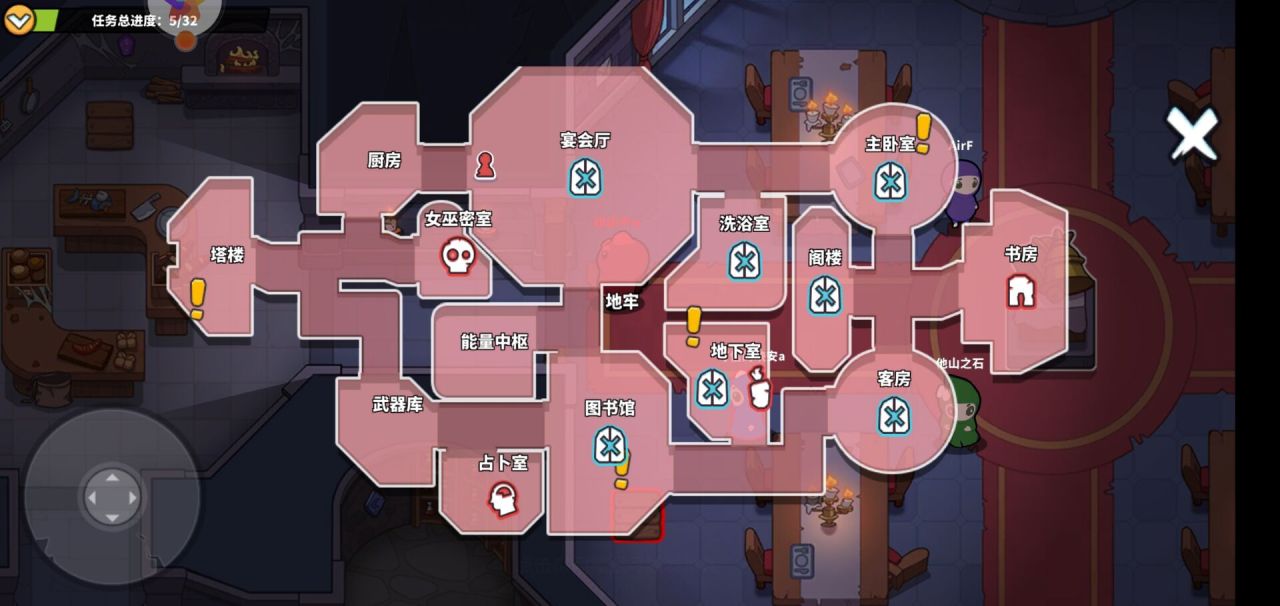 另外值得一提的是,除了14个基本任务之外,平民玩家还有四个紧急任务,这个紧急任务的级别一定是最优先级,限定时间30秒,通过狼人触发,如果在30秒内没有完成,平民玩家直接失败。四个任务分别在女巫密室,地下室,客房,占卜室。