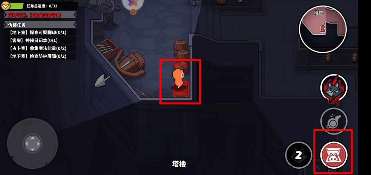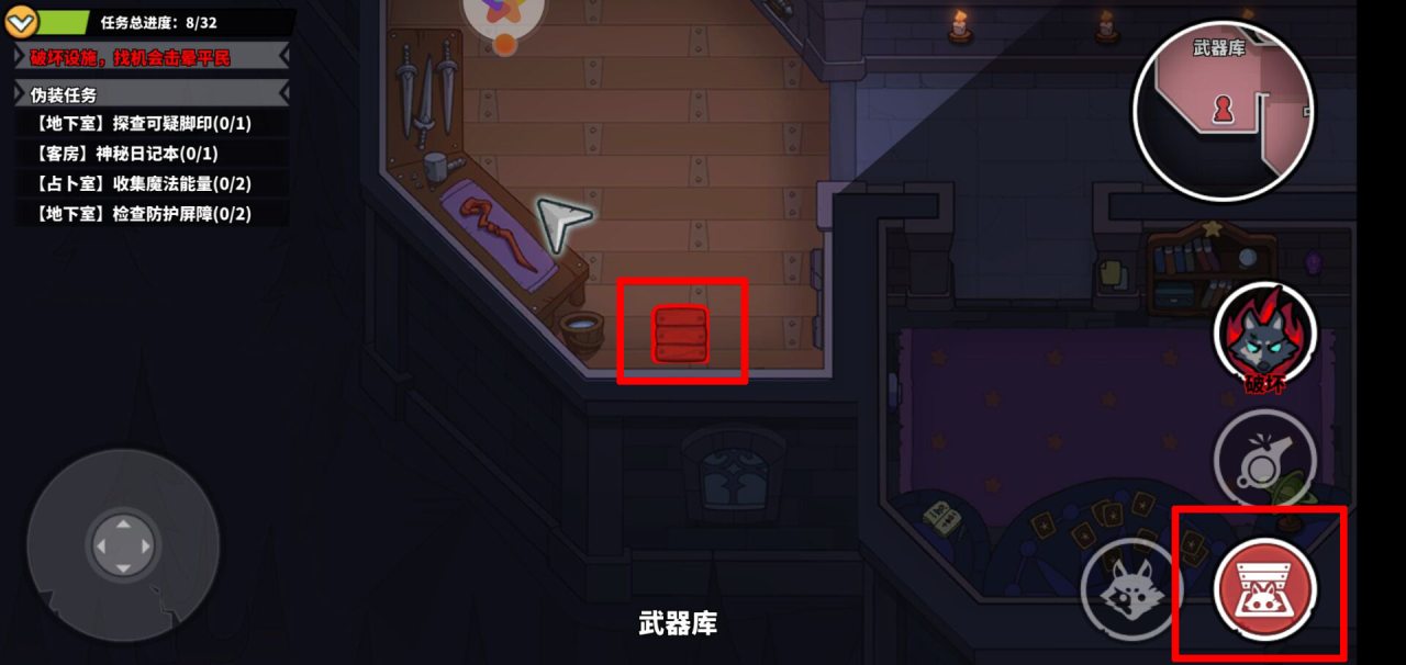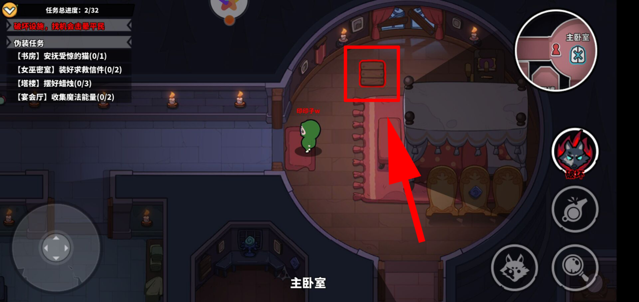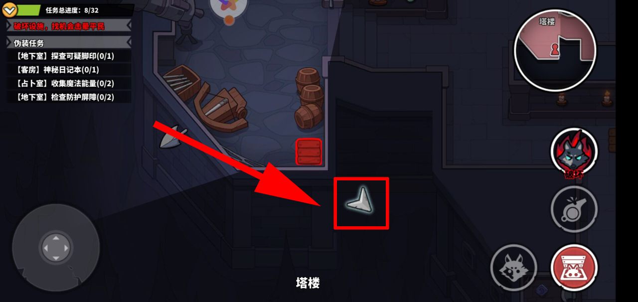 值得一提的是,钻入地道之后,还有一个神操作,就是游戏中的按钮,有一个箭头,可以让狼人在地道中随意走动,瞬移到另外一个地道,作用非常大!