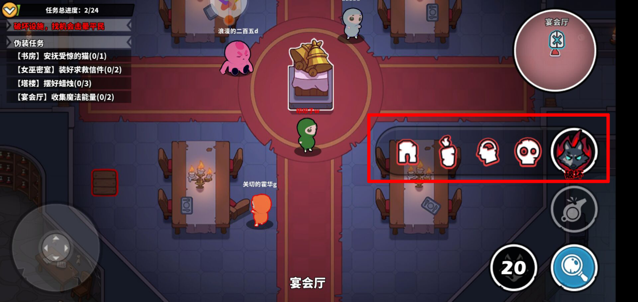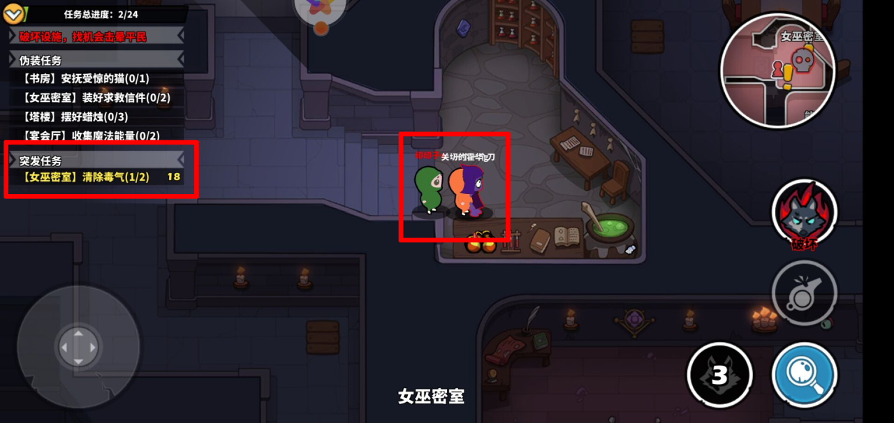 但是这个伪装任务,同样不能做,是不是很惊喜,如图所示,如果是狼人身份,到达任务地点,会发现任务道具没有发亮,也就是不能触发任务,所以让元酱非常疑惑的问题就是,伪装任务的存在意义。