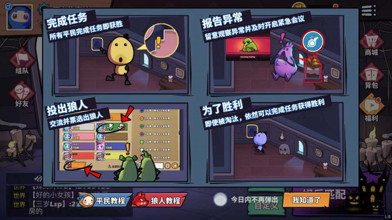 狼人之间和狼人杀最大的区别就是时效性,双方都在和时间较量,平民要尽快做完任务,狼人要再每一次讨论和投票中保存自己,找到合理的路劲是最好的方法。