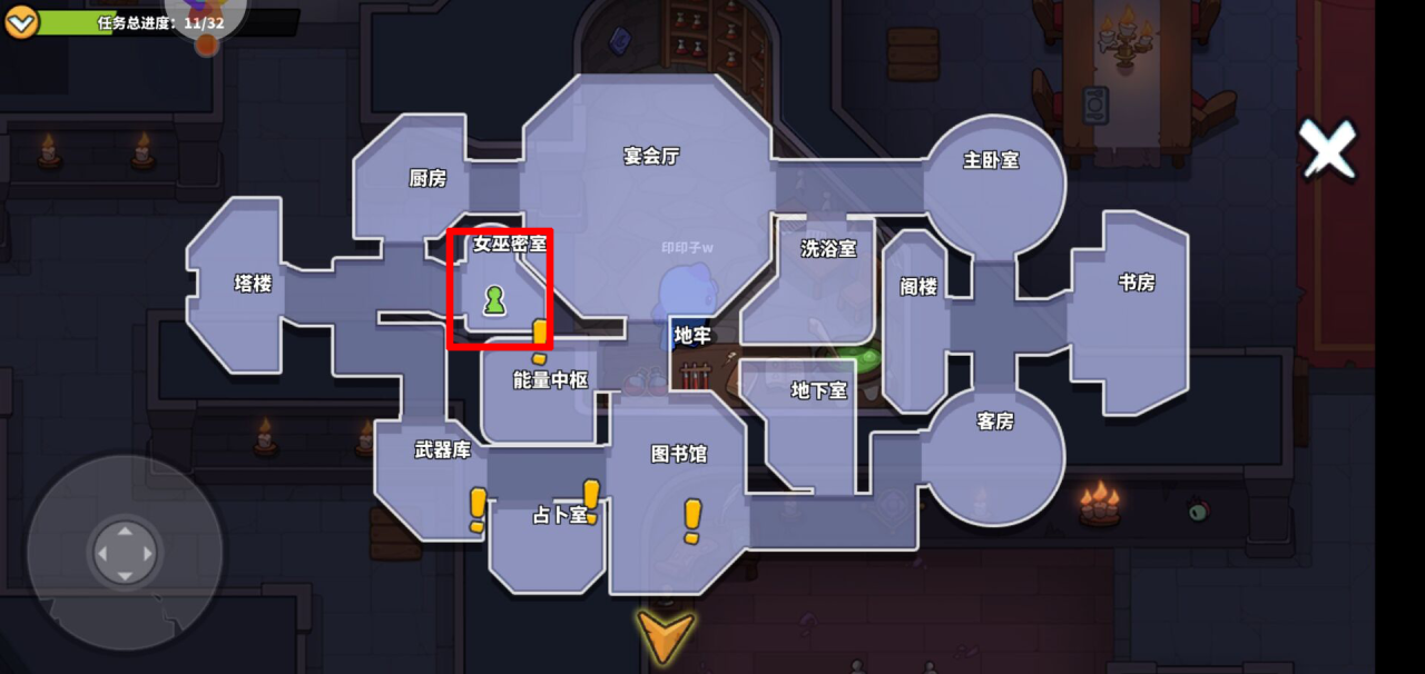 药水任务的地点在女巫密室和能量中枢当中,需要迅速赶过去并且完成,如图所示,大概在地图靠左边一点的位置,能量中枢那个任务相信很多玩家都看得懂,下面小编重点讲一下女巫密室的药水任务吧。