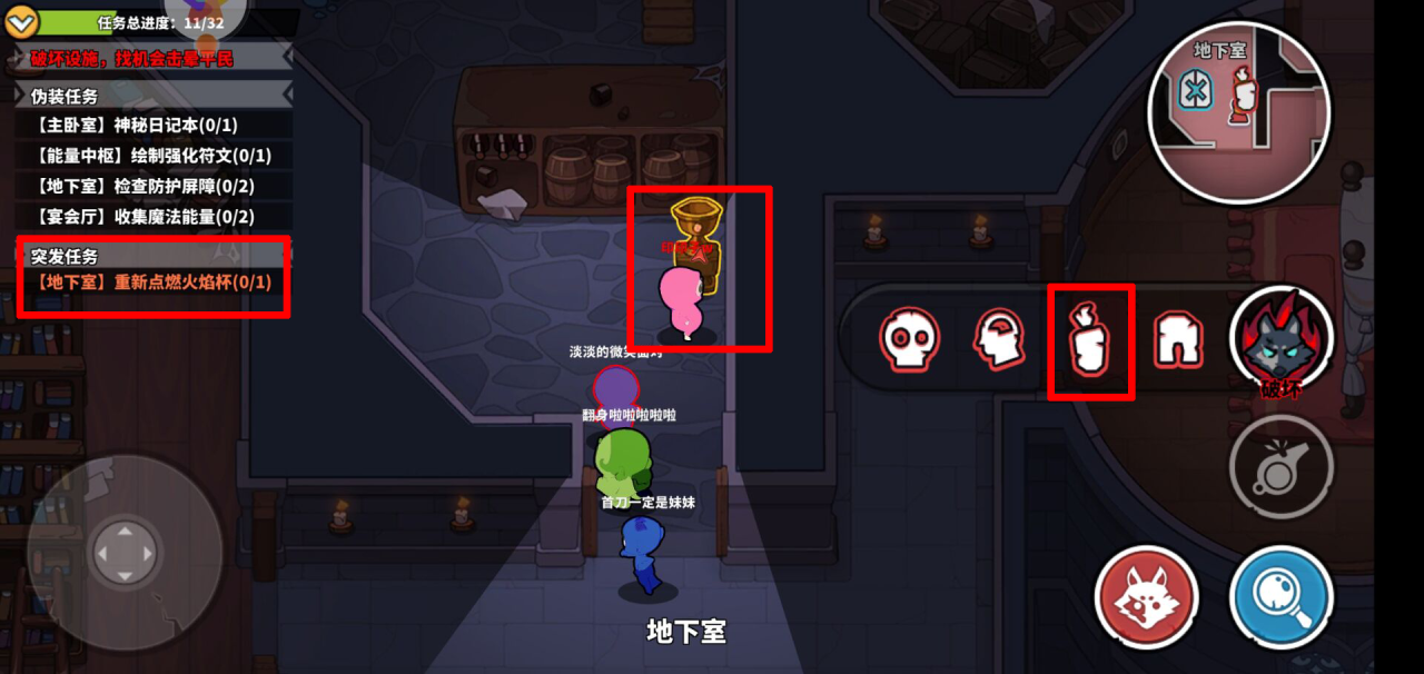 地下室任务叫做重新点燃火焰杯,完成任务的条件是刀地下室内找到火焰杯,将它点燃,需要触发任务后,点击火焰杯上的水晶,一直按着不放,等能量条满了之后就可以完成任务了,作用也不是很大,与占卜室任务同理。