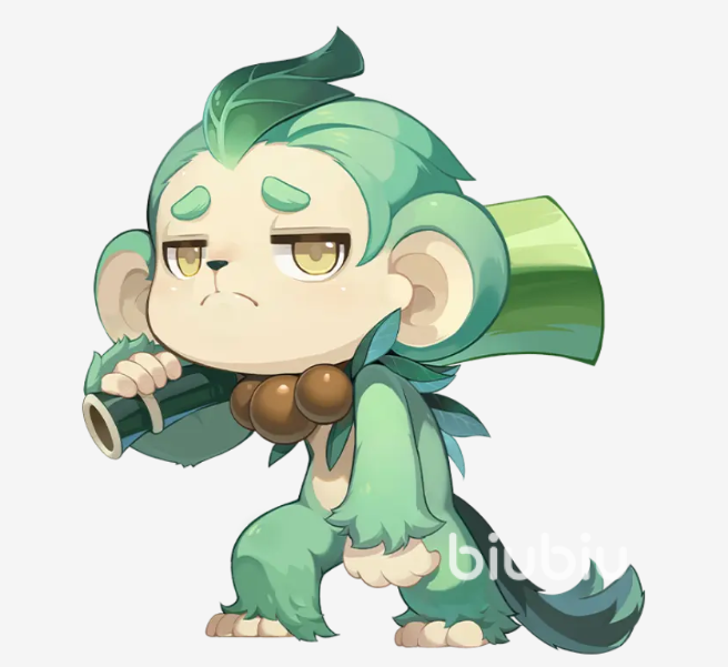 在获得了小叶猴精之后,可以对其进行升级和养成,后续升级可以进化为叶灵猴和苍叶灵猴。它是生活在山林里的精灵,在机缘巧合下获得了控制树木的能力,因此在灵兽立绘上以绿色为主。在游戏中玩家还能偶遇他们在街上巡逻。