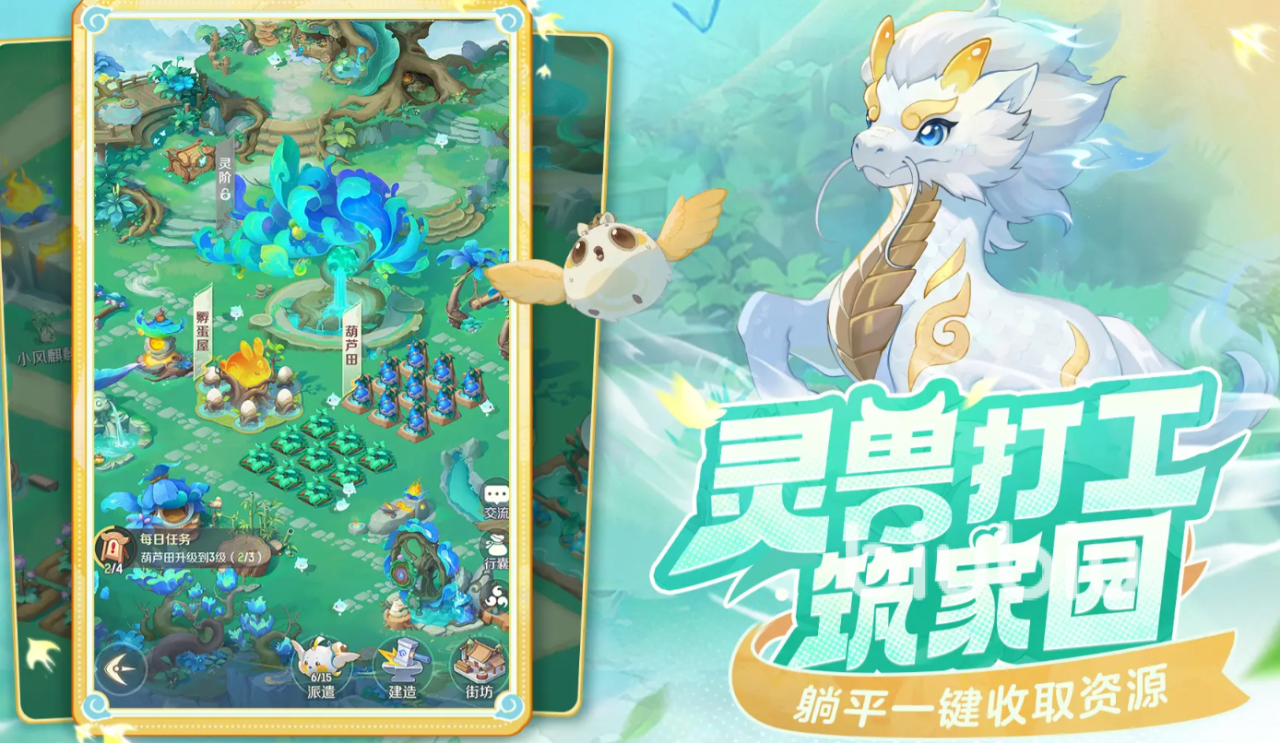还设有灵兽家园系统,玩家们可建设专属家园,让灵兽打工生产资源,兼具休闲经营元素。战斗方面的话,这里支持组队冒险、摆摊交易,促进玩家互动与经济流通。轻量化的设计,采用竖屏操作+挂机任务,适合碎片化时间游玩。