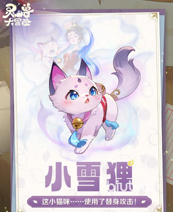 小雪狸是一只外表看起来非常可爱的小猫咪,一般担任辅助组长。1技能“此恨绵绵”,对2名敌方附加持续3回合的“此恨绵绵”状态,让目标的法术防御降低15%。2技能”情尽恨生”,对敌方单位附加3回合的”情尽恨生”状态,妃子受到伤害时,同时给目标单位传递一定百分比的伤害。3技能“柔情化骨”,使”情尽恨生”传递的伤害百分比提高。4技能“魂归来兮”,受到目标伤害导致气血小于50%时,对伤害目标来源释放一次2技能,每场战斗只能触发一次。