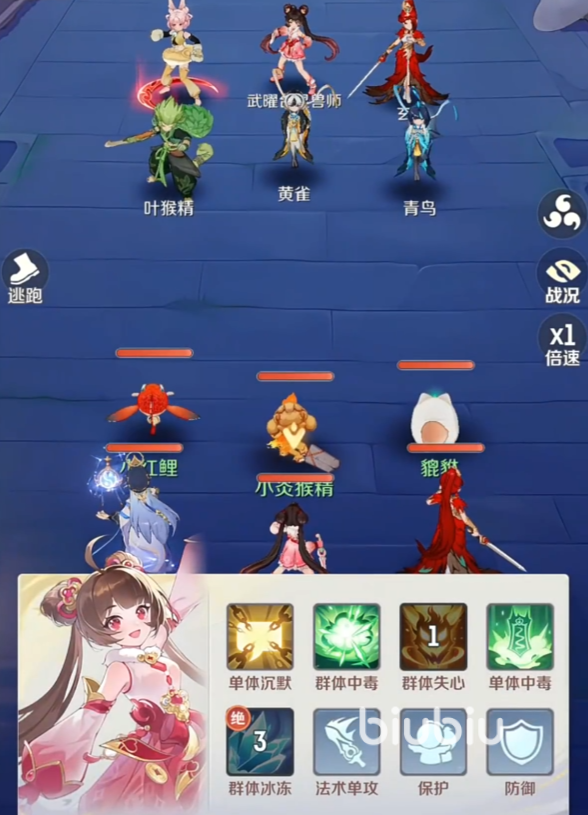 黄小啾的定位是物理输出,它的“风羽长虹”在使用后,会挥舞出强劲的风力,对场上的3名敌人形成92%的物理伤害,随后还会为自身附加上3回合的“风羽”,“风羽”能在每次使用翼幻三影时,将其以50%的伤害重新再释放一次,对敌人进行二次攻击。
