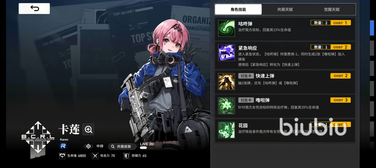 卡莲是一个五星角色,在长相上面是比较甜美温和的一个女孩子,她主要的能力其实和外表也是比较符合的,她温馨的笑容会给队友带来治愈的效果,主要就是通过自身的技能来提高对队友治疗的能力,让队友的生存能力更近一步。