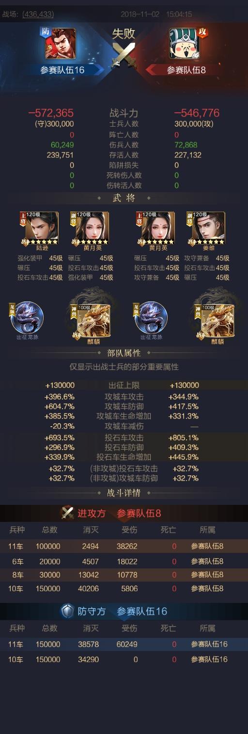 小队16:黄月英+陆逊、11级攻城车15W+10级攻城车10W、神兽麒麟。