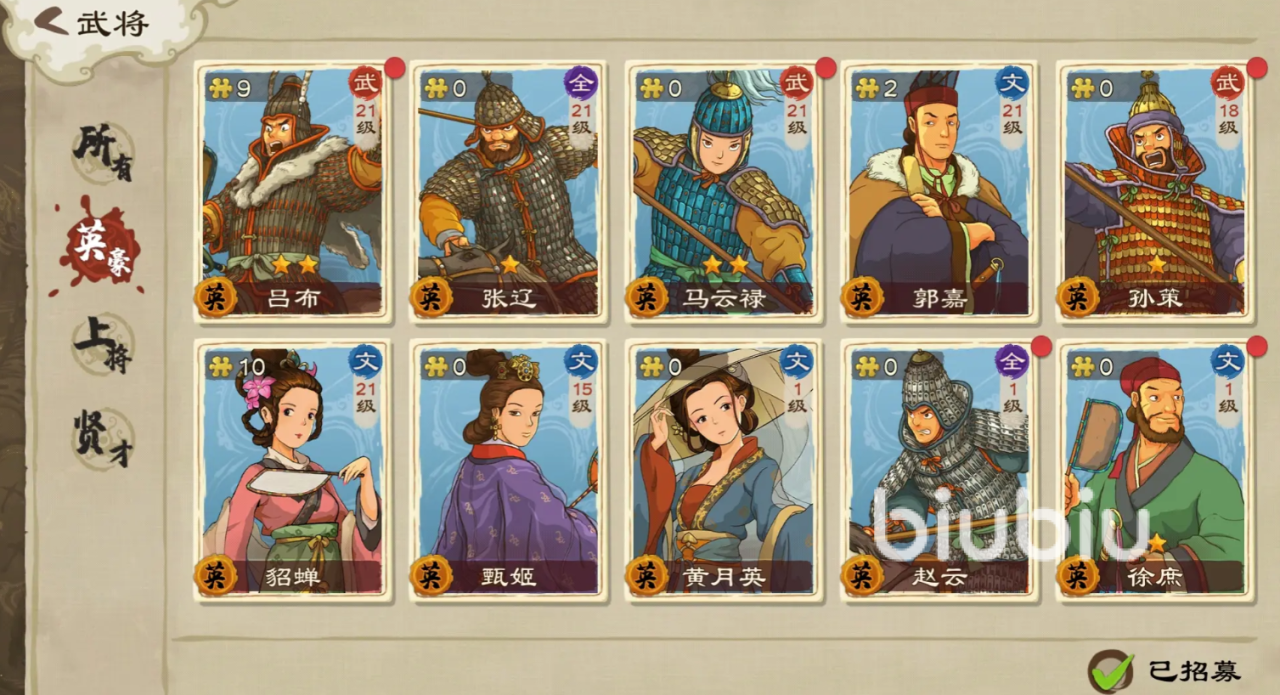 除了上面这几个角色值得推荐外像关羽、张飞和吕布等都是非常适合新手玩家去玩的,游戏初期作为新手这些英雄都是可以通过酒馆招募和武将的自选箱来进行获得,同时这几个角色打架的成功率也是非常高的,伤害也非常可观,和其他新手时期可以获得的英雄相比属于效果非常好的那一类,小伙伴们都可以去试试。