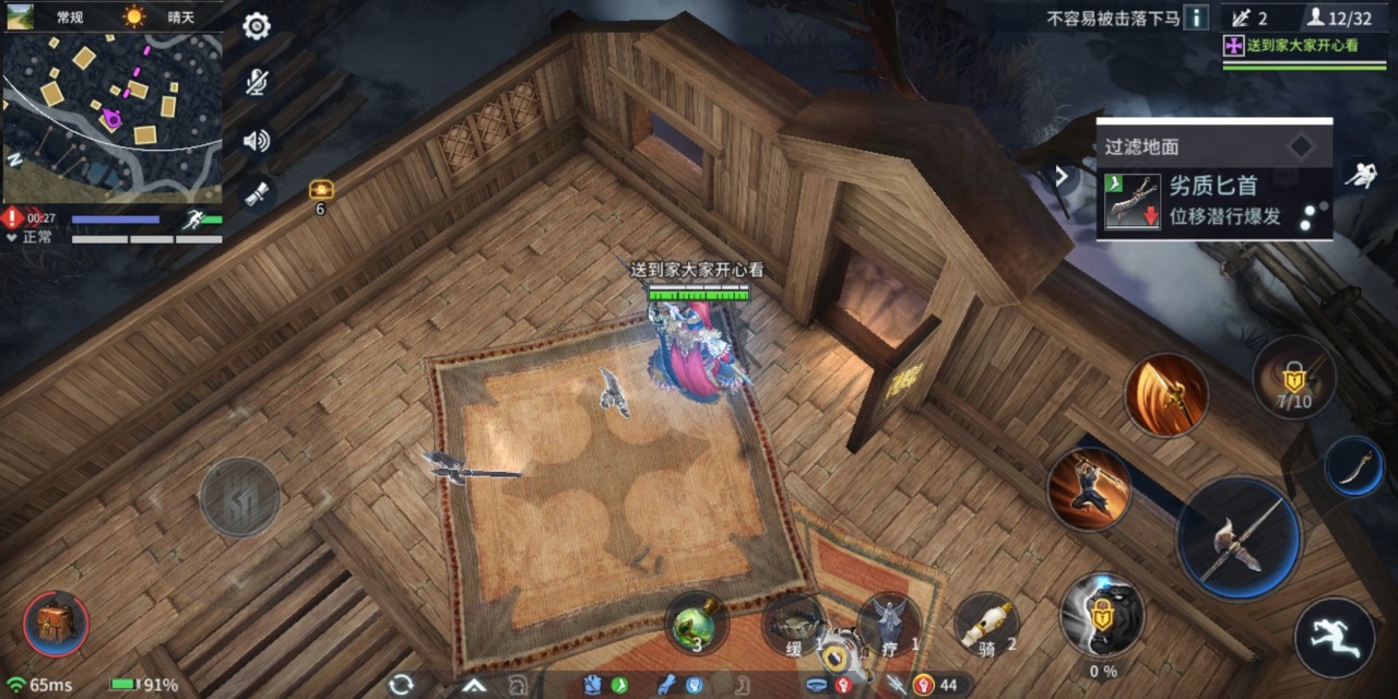 敏捷型武器匕首的特点是隐身、潜行、多段位移,这样即使打不过敌人也能够快速逃离,但相应的缺点就是伤害非常吃淬毒飞刃+跃击技能的命中率。实际对局中建议先利用深渊火、亡灵雾等投掷物消耗敌人血线后再进行攻击。