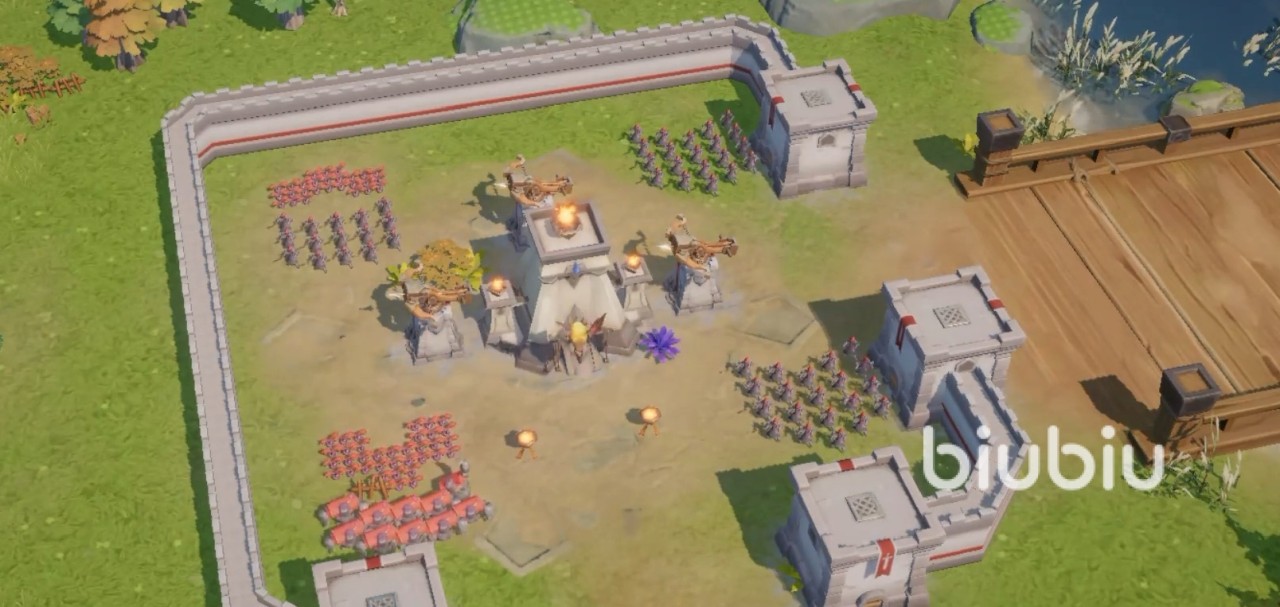 第三种介绍的布局是主堡防御式,各位领主要将城墙叠在主城周围,剩下的建筑全部要放置在城墙外围,龙石结界放置于对角区域就行,安排成这样的布局就能让战火在远离主堡的位置,从而降低己方主城的损伤,不过,这样的布局对于玩家的操作和队伍配置要求会高一些,如果己方战队失败,那就会全军覆没。