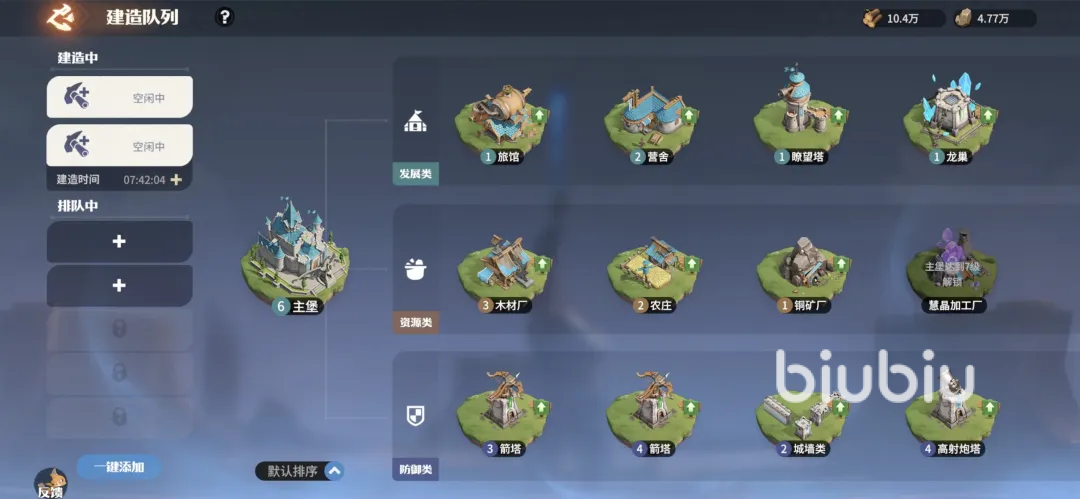 如果大家想开启建造模式的话,第一件事情便是将主堡升至6级后才能解锁野外建筑功能。接着在野外建筑中就可以使用建造模式搭建各种建筑物了,想要升级主堡的话,就需要不断准备材料,并获取足够多的经验才能快速升级,这时建议先去做一些主线任务。