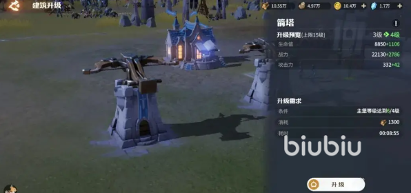 而且主堡被摧毁意味着主城战失败,所以大家在放置这个建筑的时候,尽量放在主城中心处,或者是被防御建筑包围的地方,最后是防御类建筑,这类包括比较大比方说箭塔、蓄流水塔都属于这一类,它们所需的升级时间和需要消耗的资源都比较少,作用就是用来保护主城重要建筑。