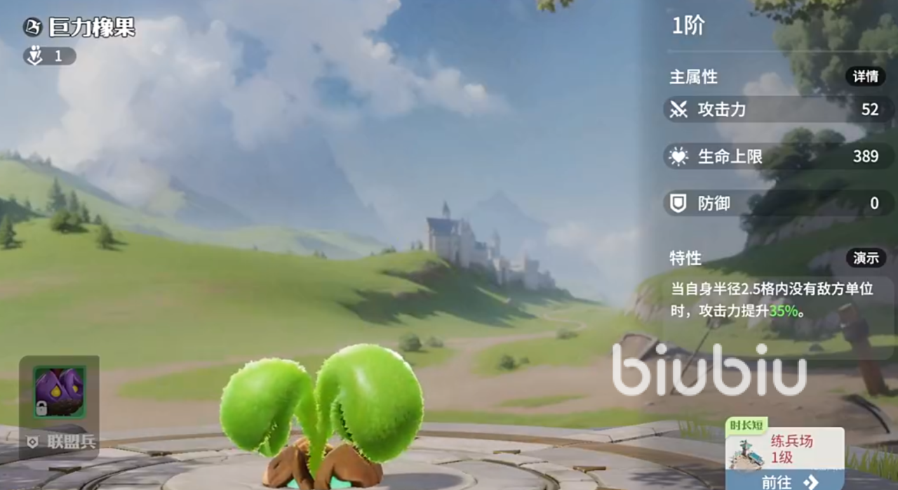第一套建议使用刚毅石人和巨力橡果的搭配,刚毅石人有着不错的护盾和分散特性,能帮助吸引敌方的火力,巨力橡果特性是周围没有敌人时提升攻击力,能在后排进行单点输出,以数量上的优势来战胜敌人;