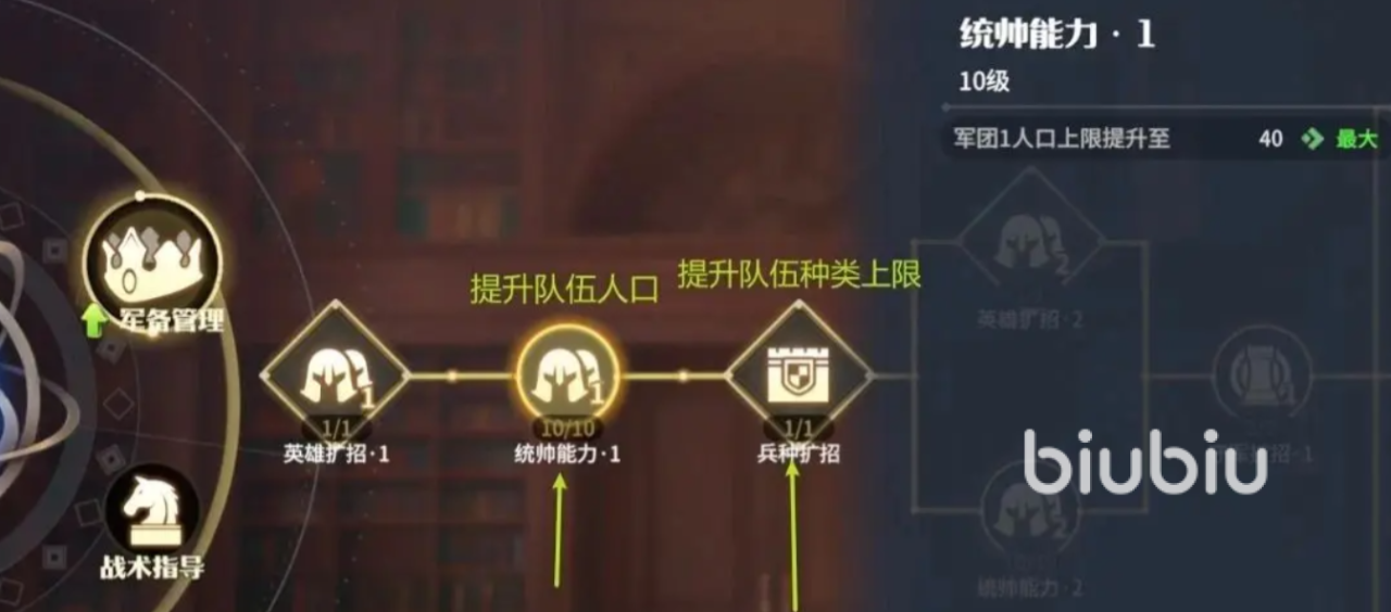 最后除了提升手上兵种实力外,还可以提升我们兵种上阵的上限,只要点击战争学院,在里面花费慧晶研究科技军备管理路线,这样就能提升队伍中士兵人口以及种类的上限。
