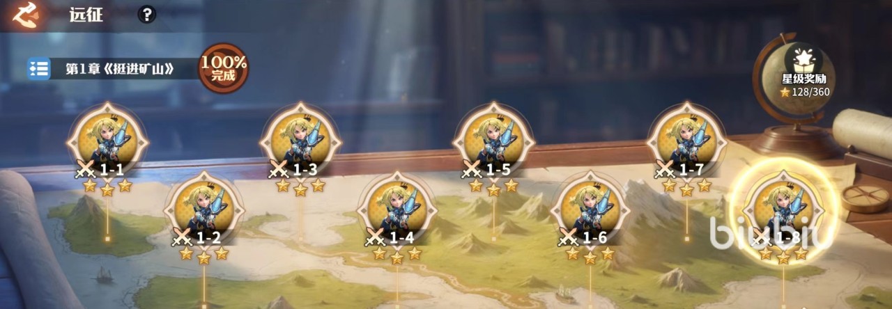 远征玩法所能获取的奖励包括建筑资源、英雄招募道具、英雄培养的核心材料等,既可以用于升级建筑、招募英雄,又可以帮助成长,所以是游戏中很重要的核心玩法。当游戏开服之后,第一天大家跟随主线完成进度,在达到主线第4章,主城达到5级时,就可以解锁远程玩法了。整个远征一共划分成了15个章节,会根据主城的对应等级进行解锁,所以尽快提升主城等级,解锁更多章节,可以更快的获得资源。