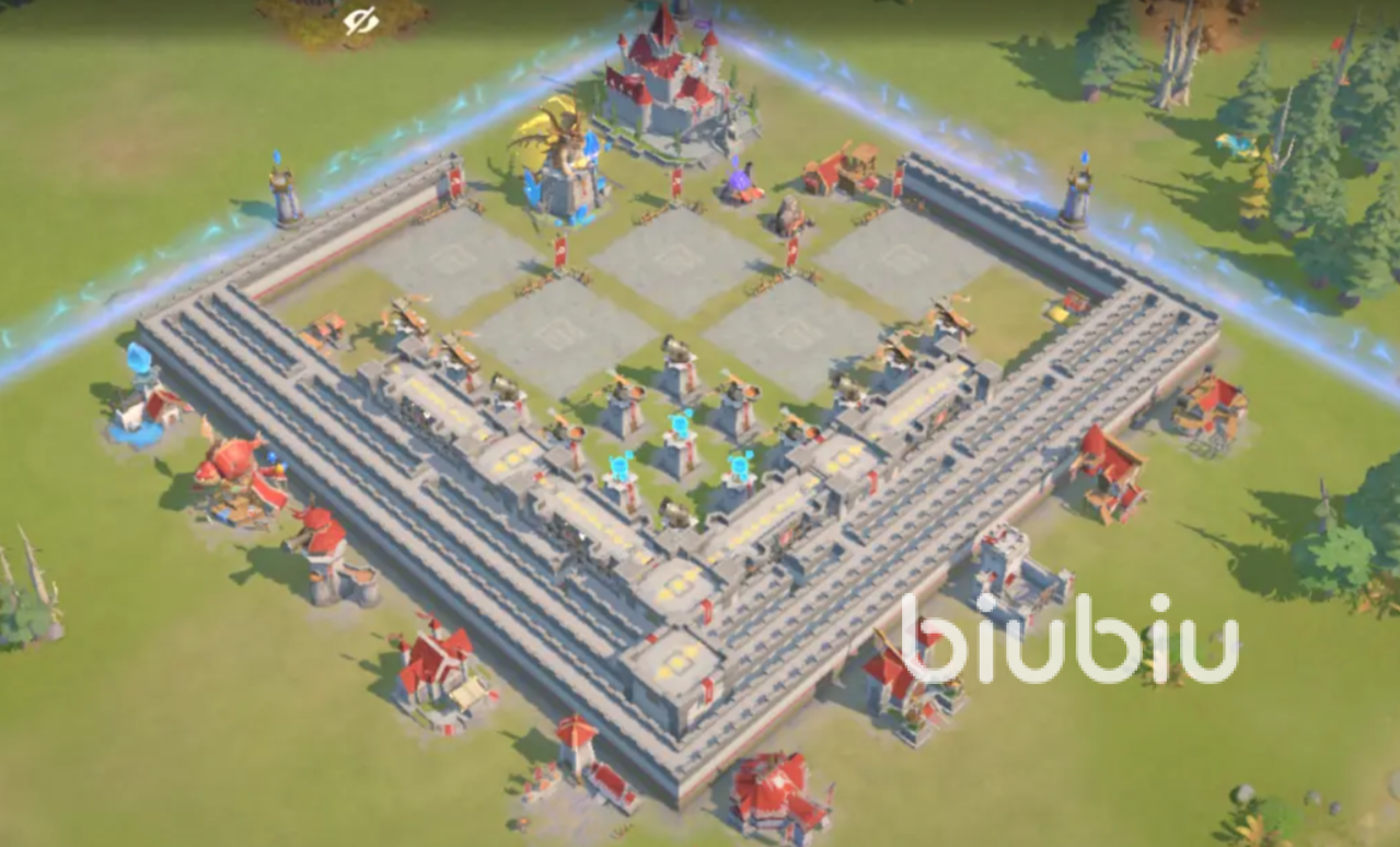 布局方面,记得将城墙和防御建筑一定要放在外围,抵抗敌军的入侵,资源建筑放在比较外围的地方,来分散敌人的火力,将城区的范围给缩小,我们最重点的主堡一定放置在最中间,并安排好陷阱在主堡周围。