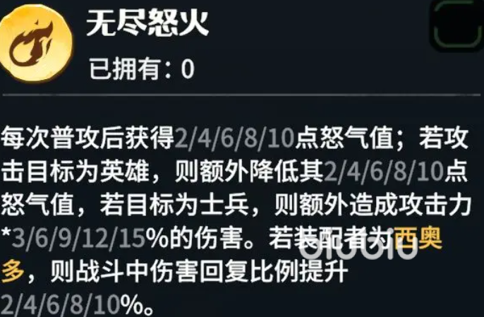 防御则是能带来生命数值,或者是伤害减免,都和防御相关,回复类也同样是让回复量增加的类型,最后的全能就是回怒气的,能帮助英雄快速释放怒气技,适合所有流派。