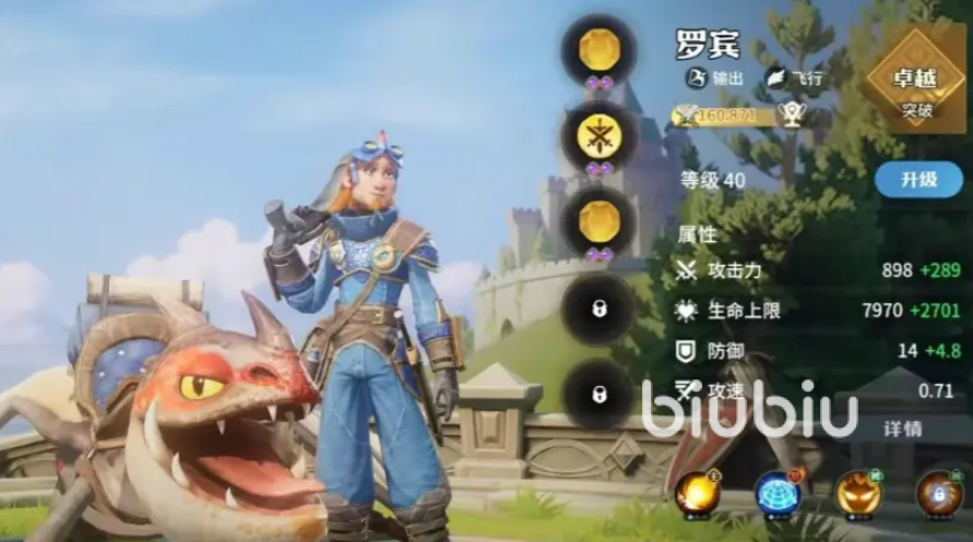 罗宾是输出类型的飞行英雄,他的主动技会朝着地面吐出一个火球,火球会造成一个持续5秒的燃烧区域,该区域每间隔0.5秒就会对其中敌人造成38%伤害,升到史诗会对处于粘网的敌人造成额外输出,他的怒气技会对范围内目标发射粘网,被粘网命中的空中目标会掉落地面,进入5秒的束缚状态,升到传说还能降低该目标防御值,建议培养时,优先选择高攻速和高回能,靠着这两点来持续触发粘网,并造成额外伤害,灵石推荐决斗时刻,它能大幅缩短怒气技的循环,提升其控场与伤害能力。