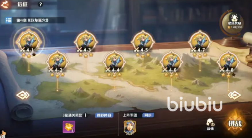 在主页面点击战役按钮后进入远征,目前的话远征共有15个章节,会根据大家主堡对应等级来解锁,所以优先提升主堡等级,有助于快速解锁更多章节,帮助有效获取资源,15个章节中还会分为不同的关卡,每一个在通关后会有一到三星的评价,只要成功击败敌人就能一星通关,而想拿到高星则需要满足关卡条件,拿满总星级虽然会有更多奖励,不过新手在前期英雄、兵种等都发育不全的情况下,只要低星过关来积累资源,后面队伍变强后可以再回头重新挑战。