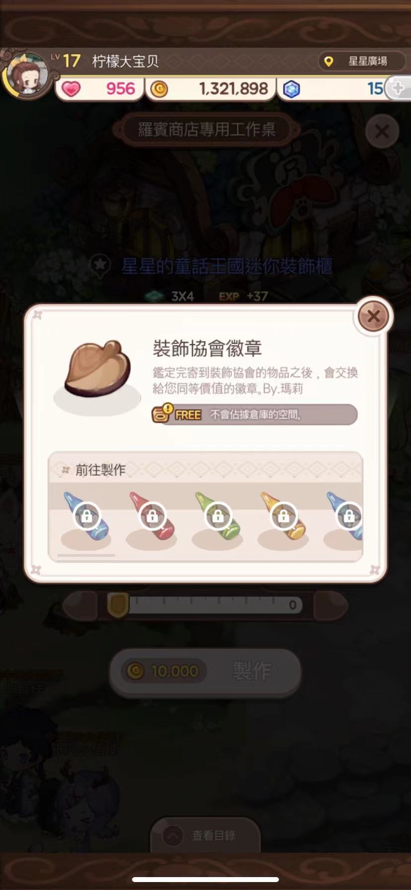 另外,就是用于一些技能性道具的制作,当玩家达到一定等级的时候会解锁星星的炼金炉,在这里面玩家可以制作很多技能道具,而装饰协会徽章则是这些技能道具制作最主要的原材料之一。