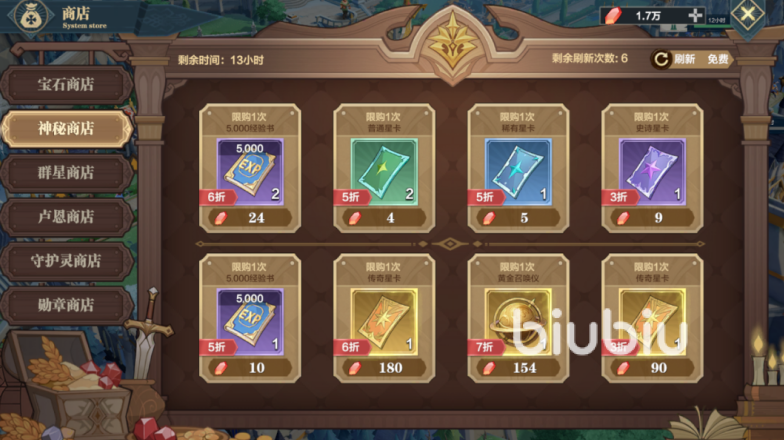 对于平民玩家来说,自己手中的宝石或者金币都有限。所以在商店内要购买性价比更高的物品,才不至于浪费钱。在宝石商店里,玩家们每天都能获得三个免费的100体力,然后可购买两折的各类资源,这时候不要犹豫每天都买一遍。另外还会出现神秘商店,每天都会刷新一些高折扣的优质道具,大家可根据自身需求购买,然后不要忘记免费刷新一次,这样即可获得新的道具。