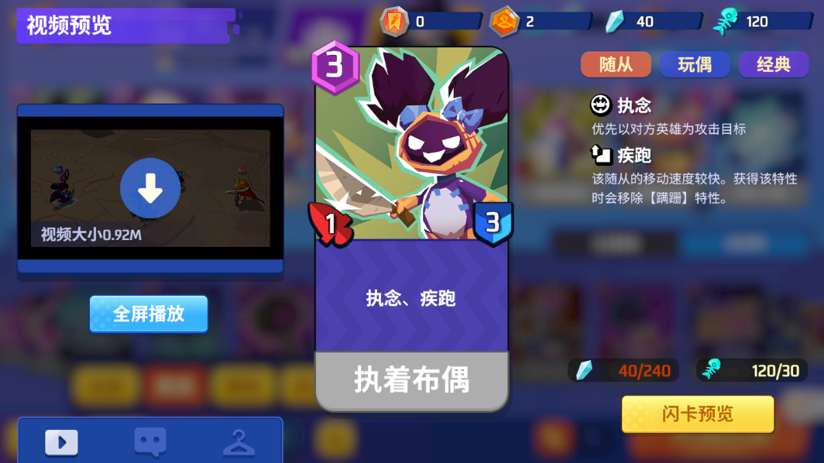 (1)前期玩法:对局前期如果我们顺利拿到1个随从不管是哪个,我们都以它为核心打。比如我们拿到执着布偶、就直接召唤,因为我们打的是快攻,那么前期就要给足对方压力。即使随从会被击杀,但也没有关系,我们可以等下一个。