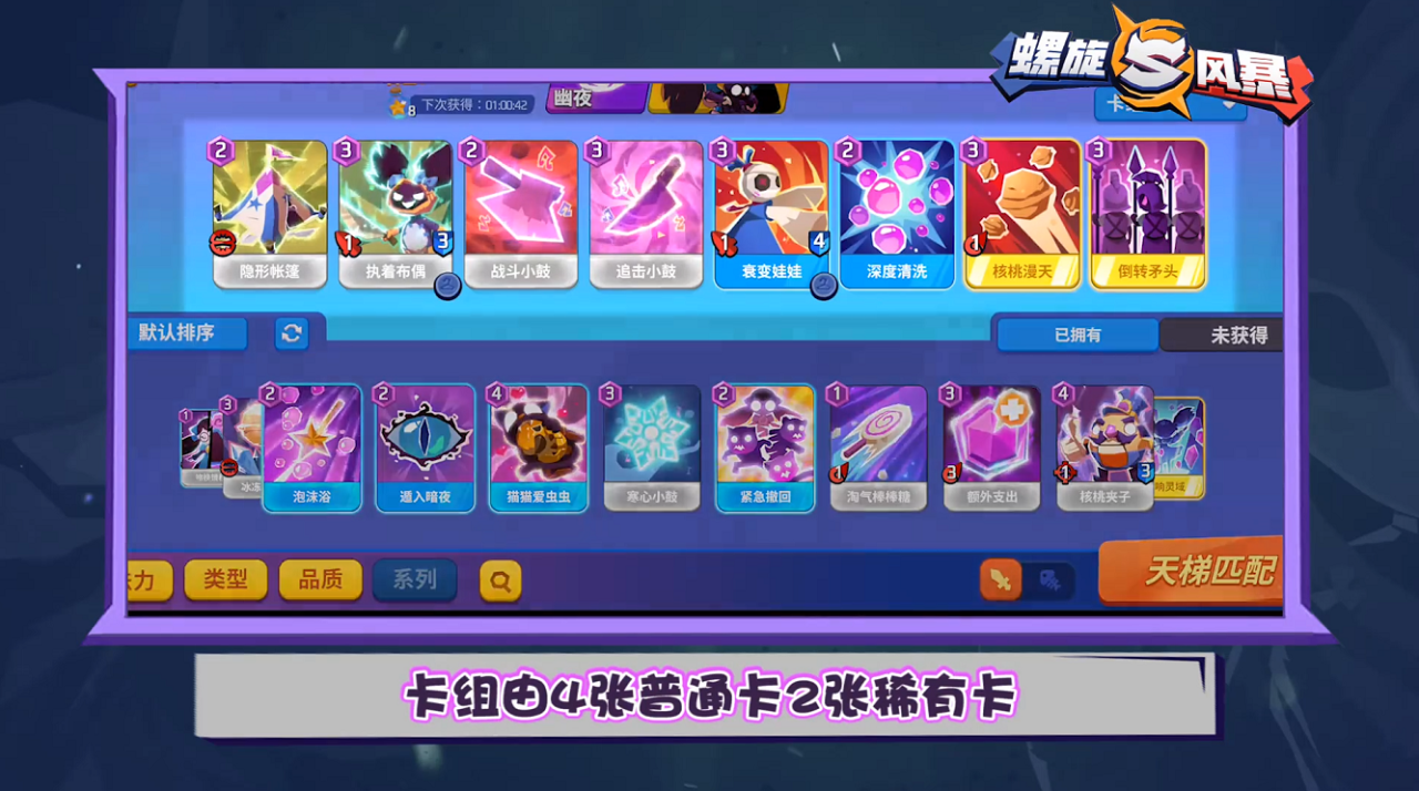(3)卡牌稀有度:小编选用了4个普通卡、稀有卡2个、史诗卡2个。