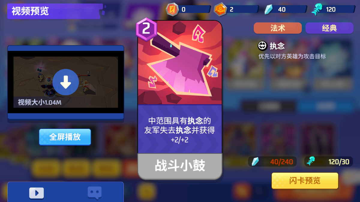 (3)战斗小鼓:这个卡牌主要就是用来配合拥有“执念”技能的,因此这是打快攻的必备卡牌。