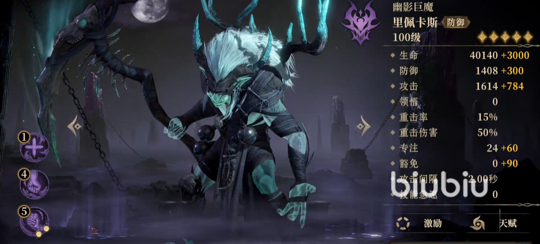 “幽灵戏耍”则是威能技,会释放三次灵体攻击,每次攻击范围内的敌人都受到+200%攻击+100%防御的黯蚀损伤,并有35%的几率减少队友20%的威能,还有85%的概率给对手施加1哥减益buff,会从几个减益效果中随机选择。